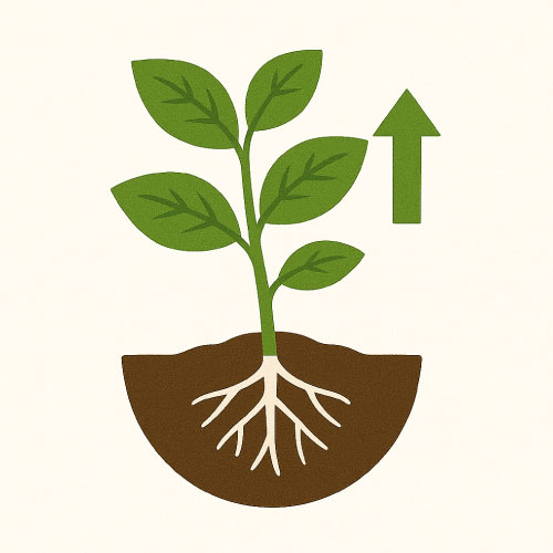EMを含む土は、土壌微生物のバランスが整い、苗の根張りが良くなるため、健全な生育が期待できます。