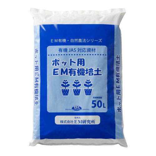 ポット用EM有機培土は、有機JAS対応の原料で作られた、有機栽培に使えるポット苗用の土です。