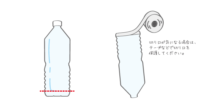 ペットボトルの底部分をカットします。