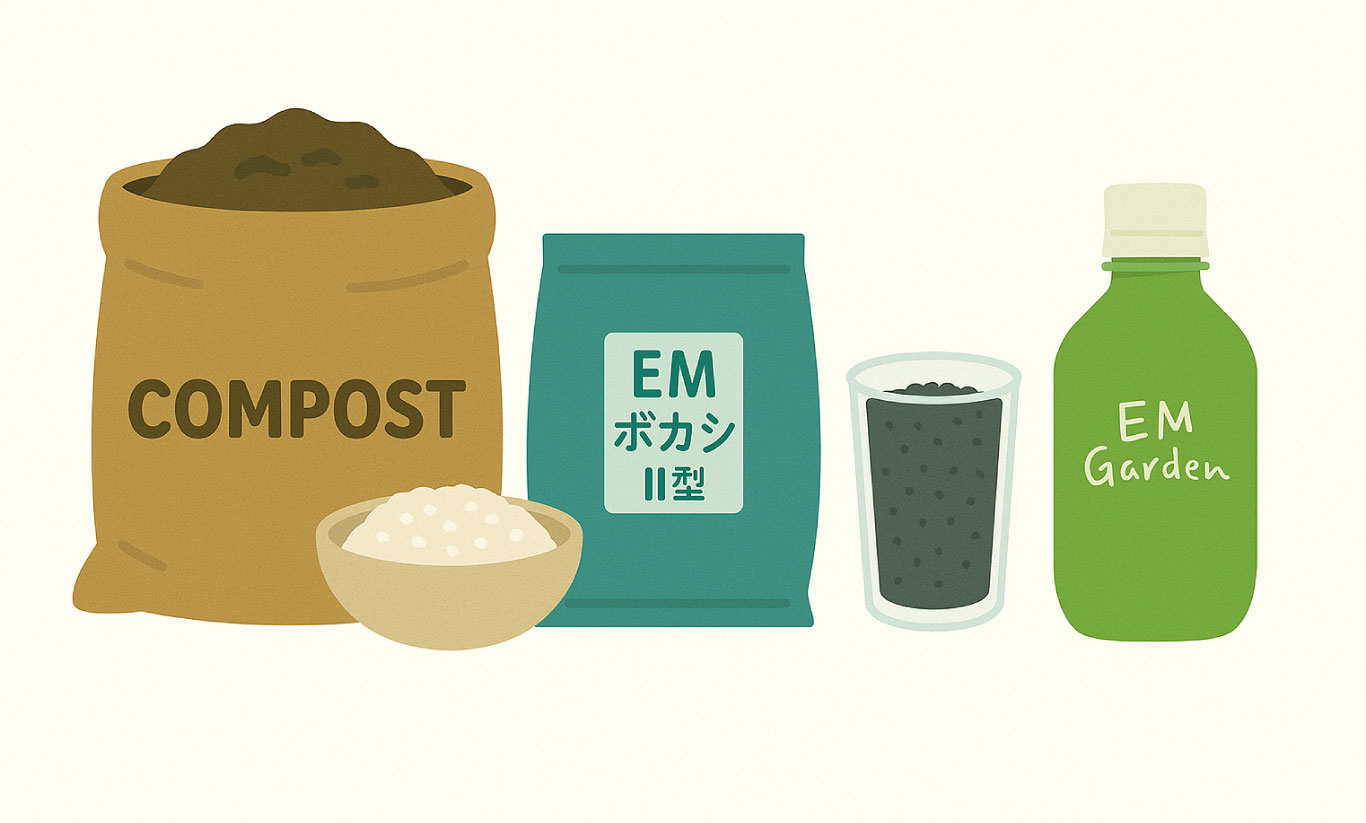 放線菌、酵母などの土の中で良い働きをしてくれる微生物が含まれている「EMポット用EM有機培土」「種まき用EM有機培土」なら、かんたんに有機栽培が始められます。