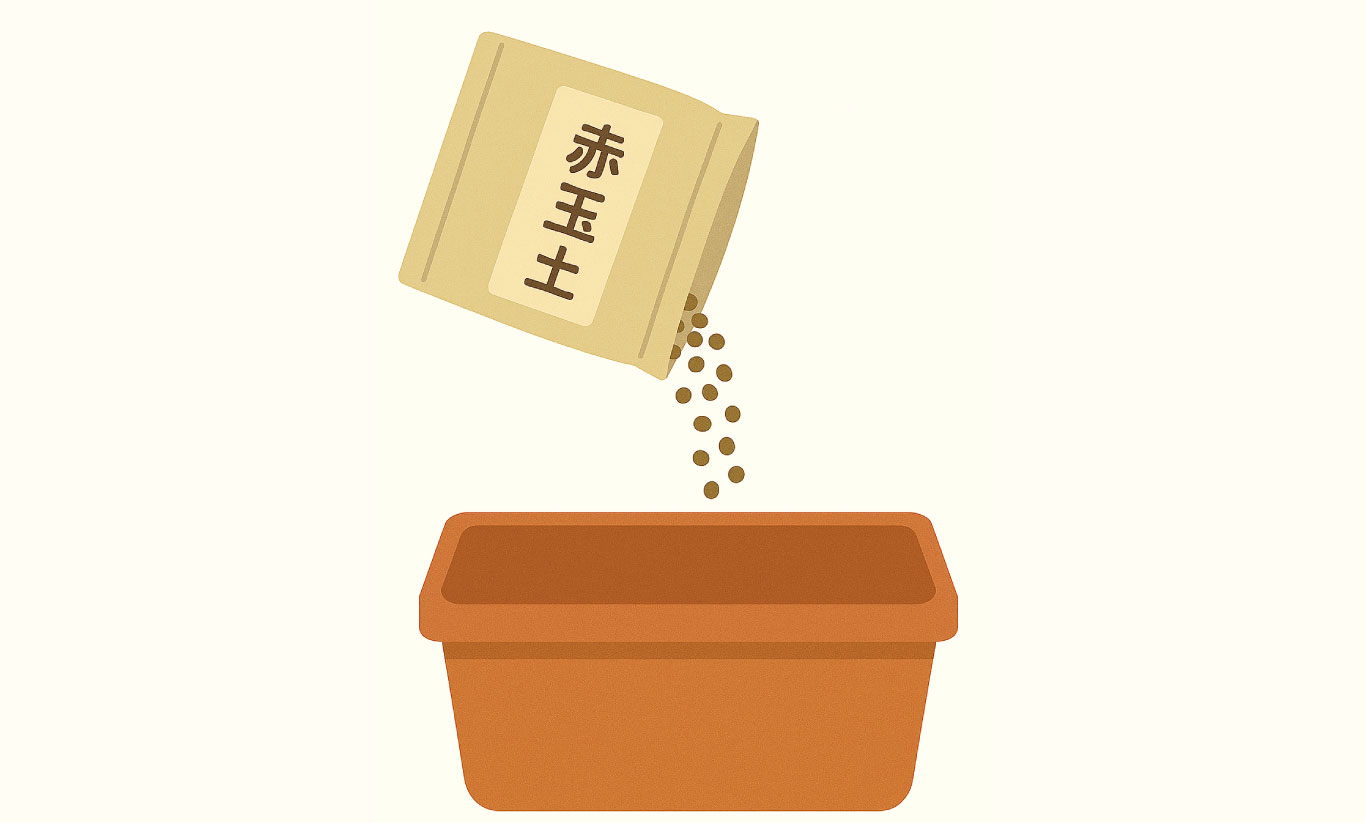もちろんホームセンターで購入する園芸用の培養土でもOK。麻袋等に土を移すときは、排水確保の為、落ち葉や大玉の赤玉土などの鉢底石を入れることで排水性が向上する。
