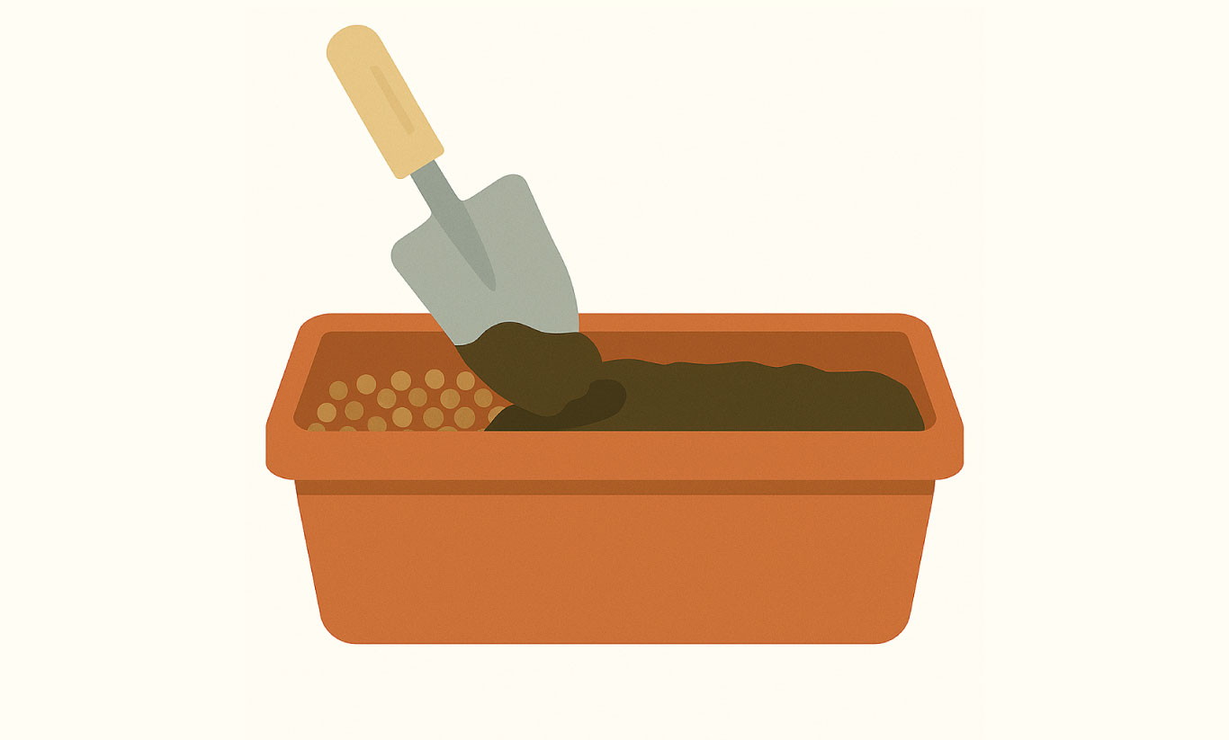 根腐れ防止に、プランターの底から水が抜けるようにします。