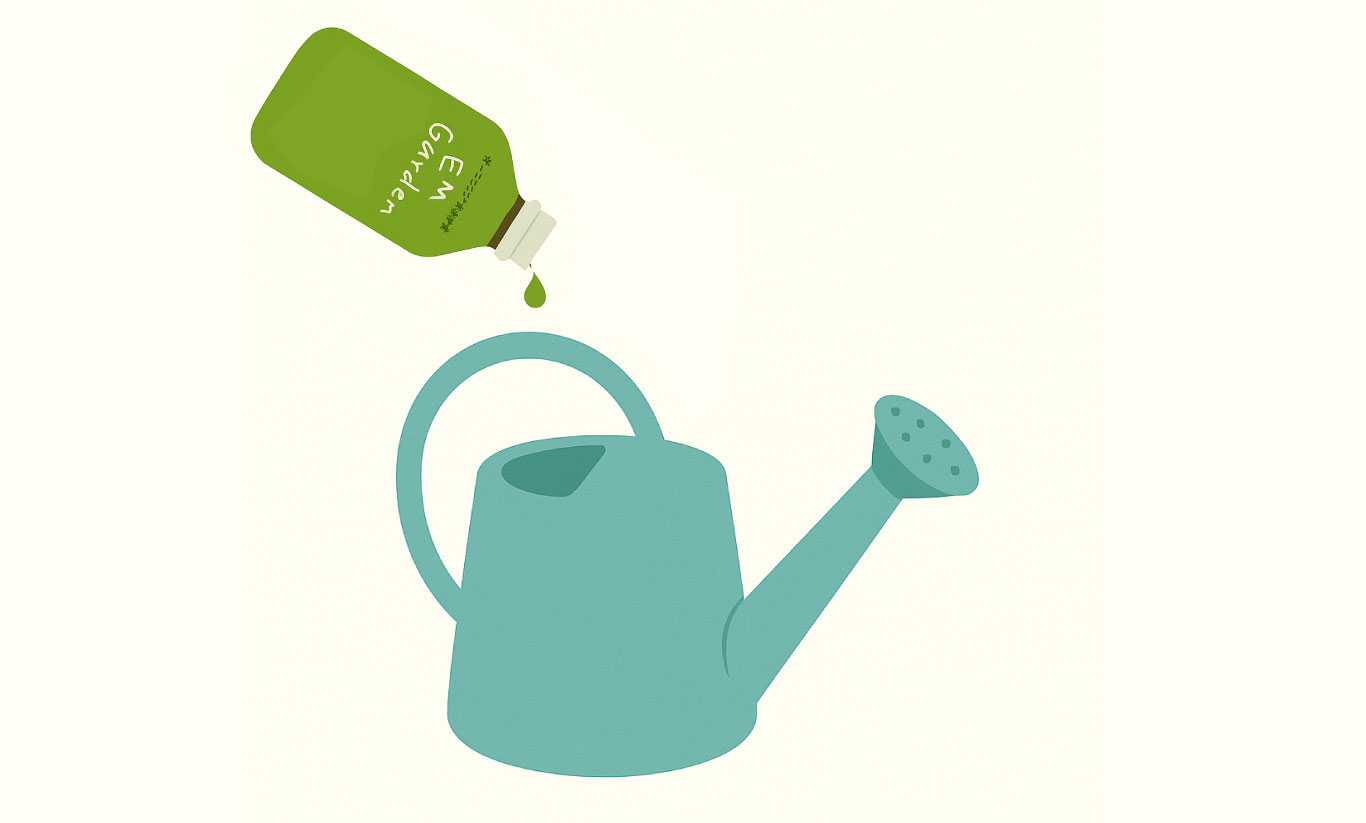 一般的には、土の表面の2cm位下が乾いていたら、EM Gardenを薄めた水をたっぷりやります。