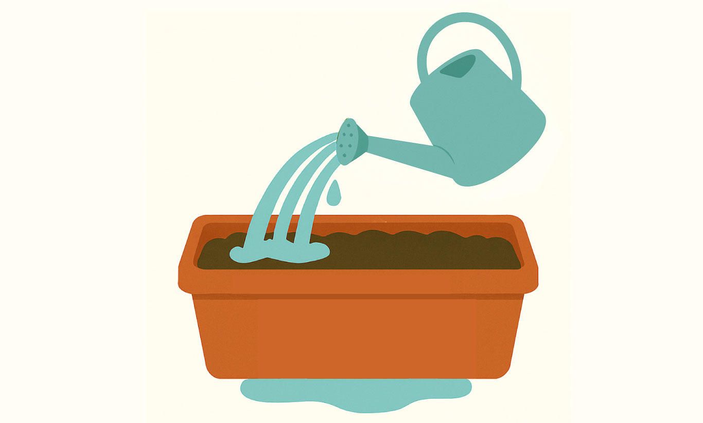 プランターの底から水が出てくるまでたっぷり水をかけます。これを3回ほど繰り返してください。