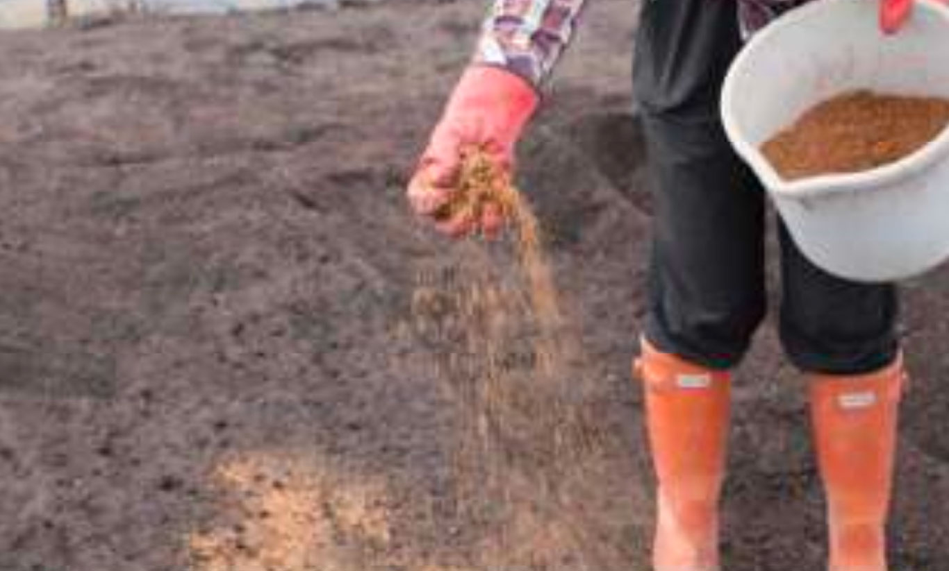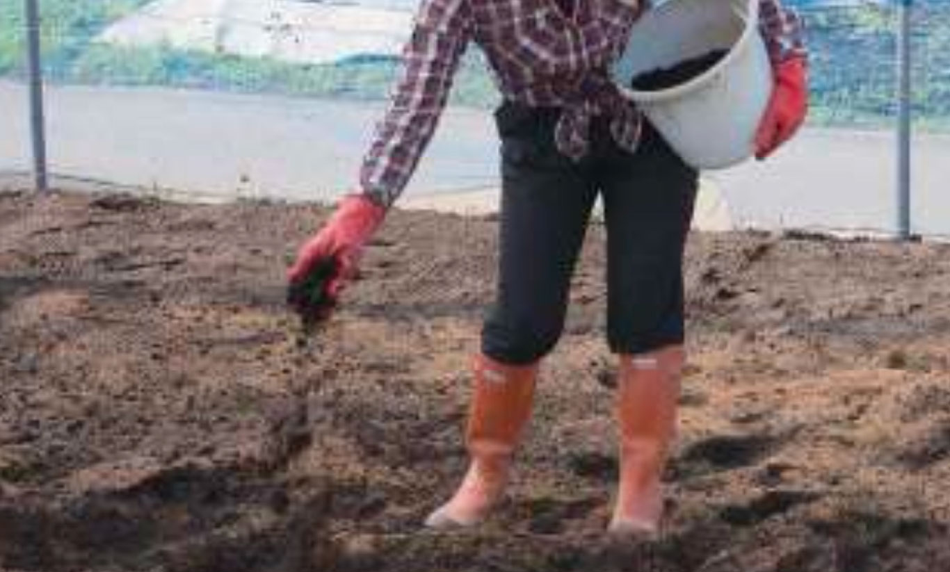 畝の表面に、残りのEMボカシII型を薄くまんべんなくまきます。